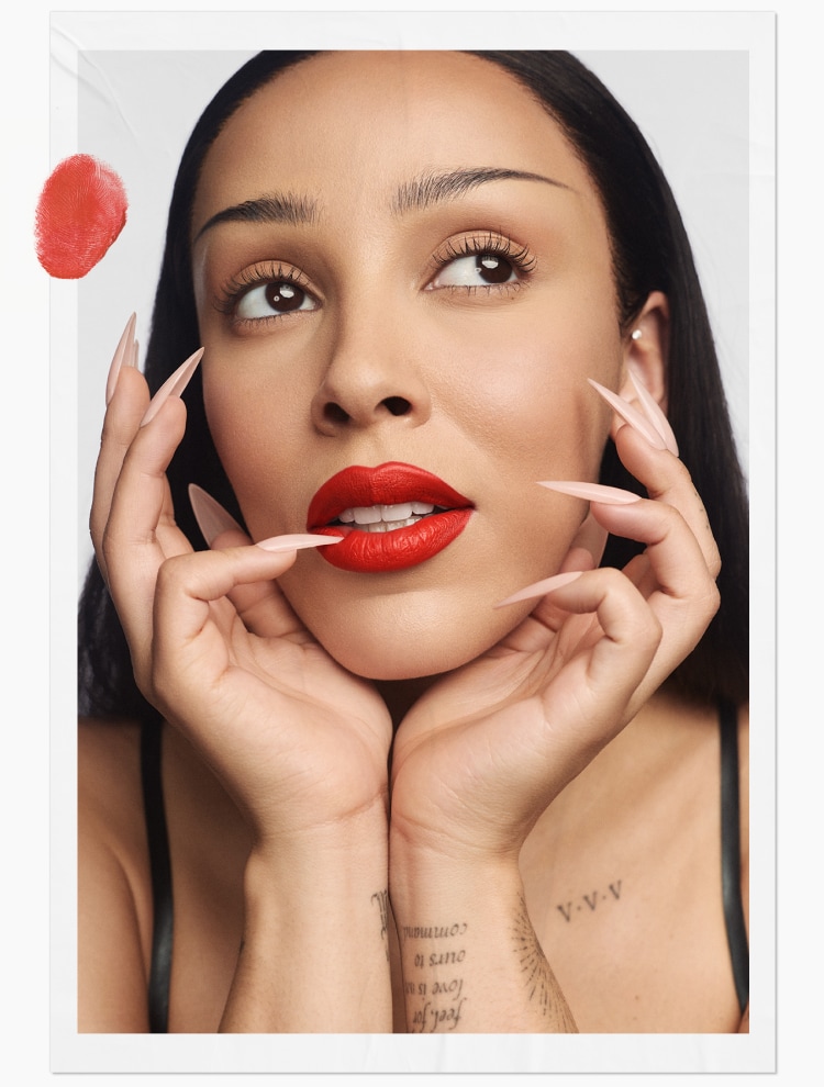 Nie ma dymu bez ognia. A tam, gdzie ogień, jest i Lady Danger – bestsellerowy, ogniście czerwony odcień M·A·Cximal Silky Matte Lipstick, a zarazem ikoniczny odcień Doja Cat.